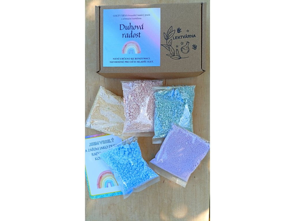 Sada plná šumění, barev a bublinek, to naleznete v této krabičce a ještě něco navíc. Krabička obsahuje 5 PLA sáčků s barvami duhy a kartičku s afirmací a instrukcemi pro tvorbu lektvaru pro děti. Zvolit si můžete variantu pro dívky či chlapce (liší se pouze v textu dle daného rodu).