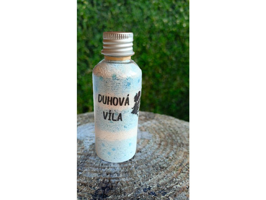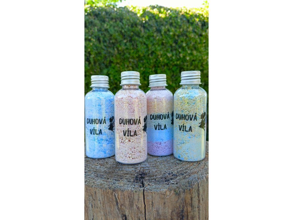 Tam kde šumí radost, přiletí Duhová víla. Tato lahvička je jako barevný dech víly, která ti posílá radost ukrytou v šumivém prášku. Stačí kapička vody a barevná magie se probudí, aby bublala, šuměla a třpytila se.