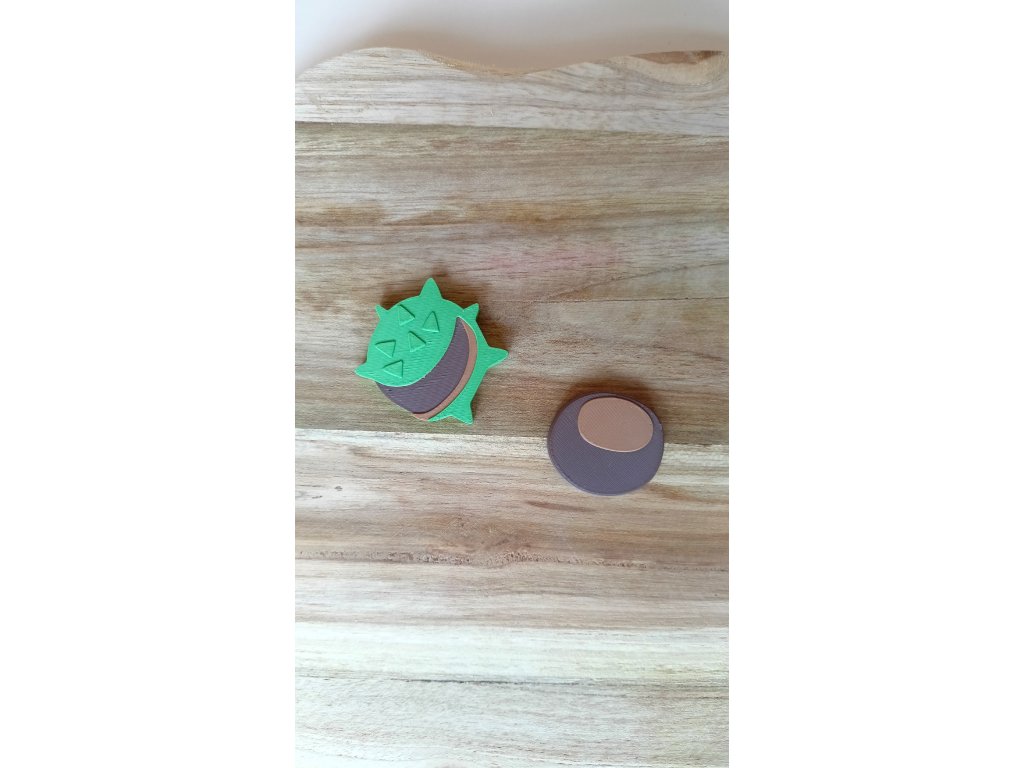 - kaštan v zelené slupce (rozměry 38 x 43 x 5 mm)