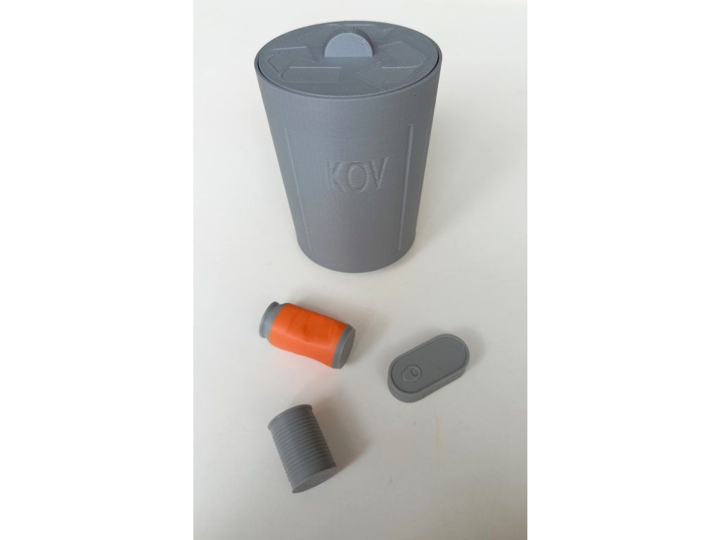 Šedá popelnice - kov - plechovka (20 x 15 mm), plechovka od limonády (15 x 29 mm), konzerva od rybiček (29 x 14 x 8 mm)