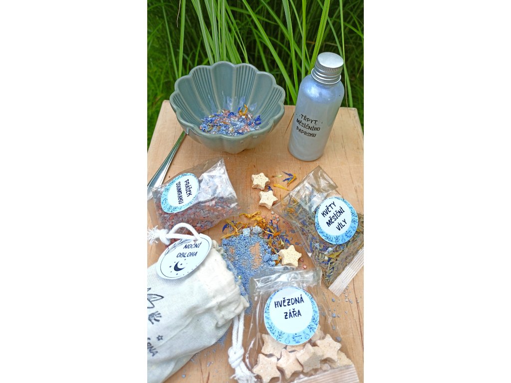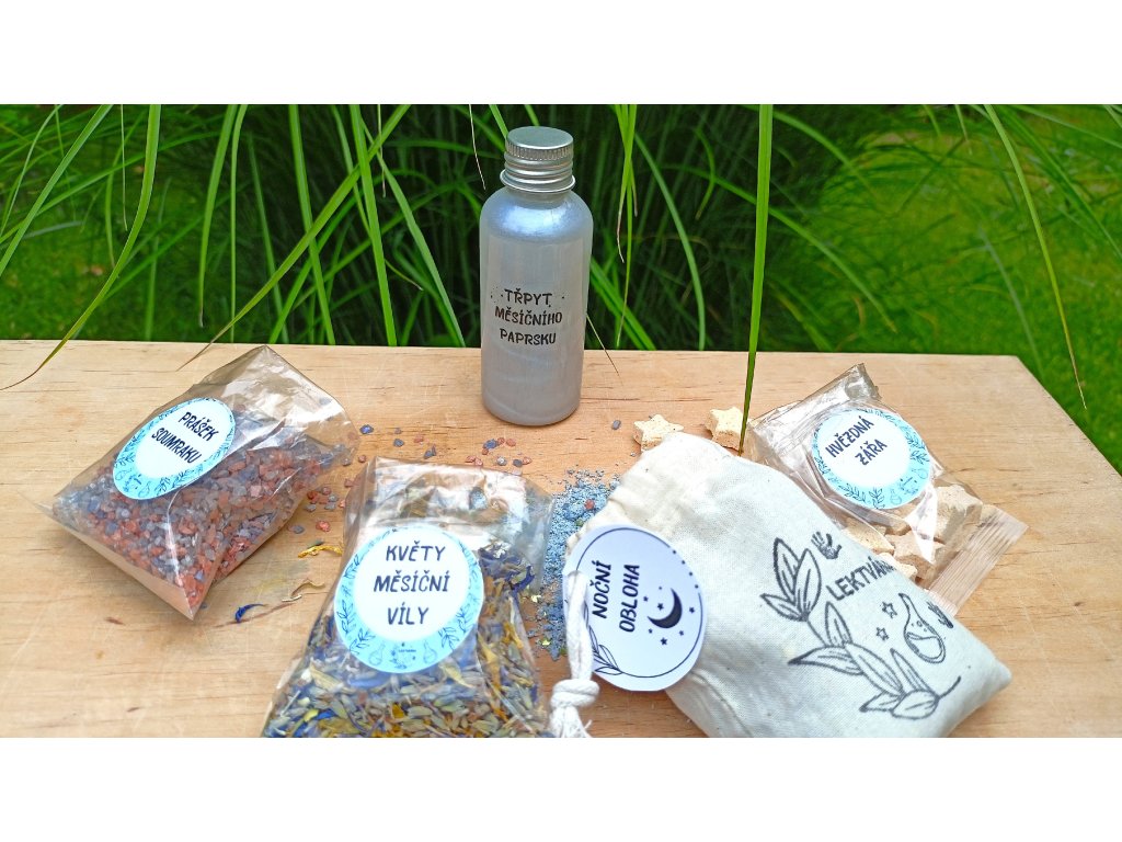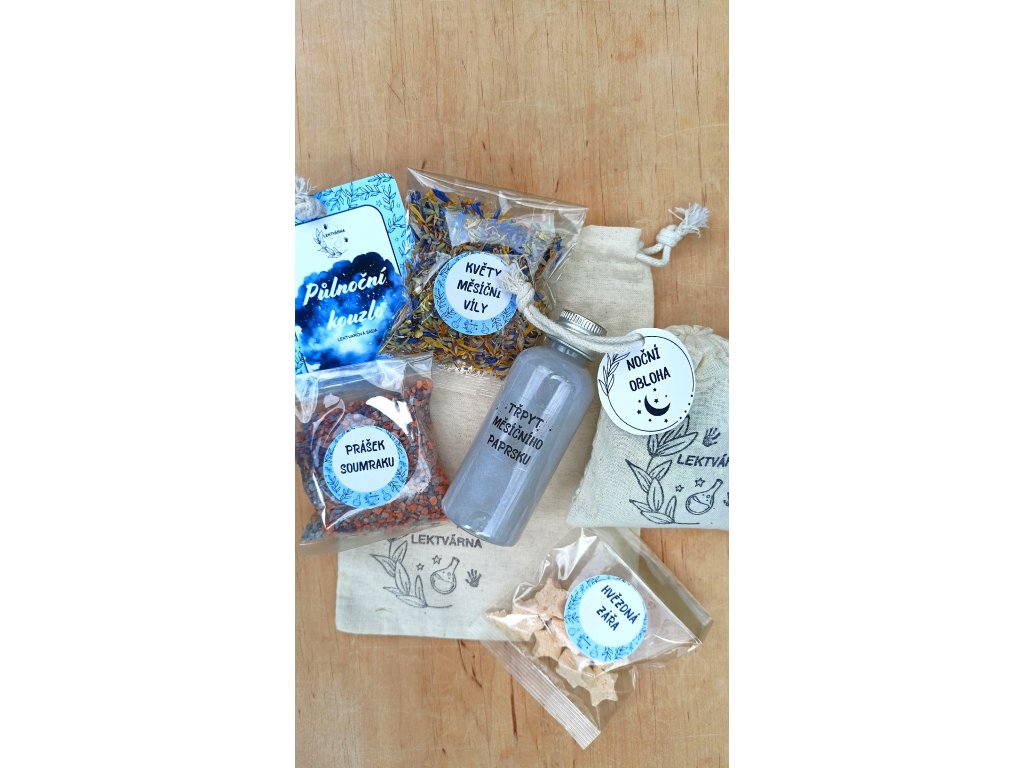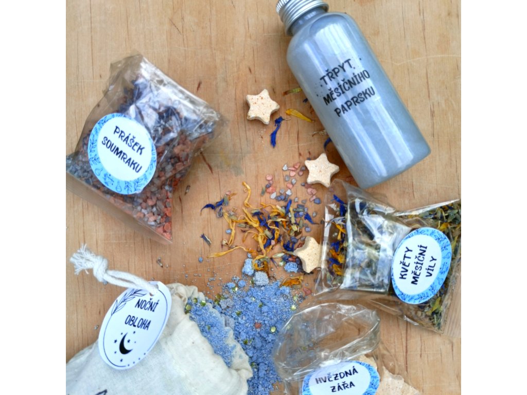 Tato lektvarová sada v sobě obsahuje magii noci a úplňku. Chcete, aby vaše děti měli jedinečný zážitek? Tato sada jim ho nabízí. Vytvořit si lektvar inspirovaný tajemstvím noci, tmavou noc rozzářit hvězdnou září, to vše nabízí naše lektvarová sada. Šumivý prach temný jako půlnoční obloha, zářivé hvězdy plné bublinek a šumu, tekutina třpytivá jako měsíční paprsek to vše a ještě více nabízí lektvarová sada Půlnoční kouzlo. Přeneste děti do světa kouzel, umožněte jim vytvořit si malý rituálek, vložit do svého kouzelného lektvaru přání nebo si jen užít šumivou a bublající hru.
