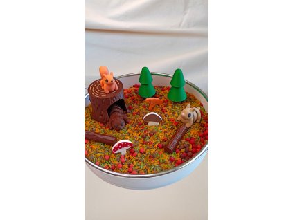 Tato sada je tematicky zaměřená na prostředí lesa. Dutý pařez, stromy, veverka, medvěd a zajíček. Nejen to na vaše děti čeká v tomto tematickém pytlíčku. Nesmí chybět sypký...