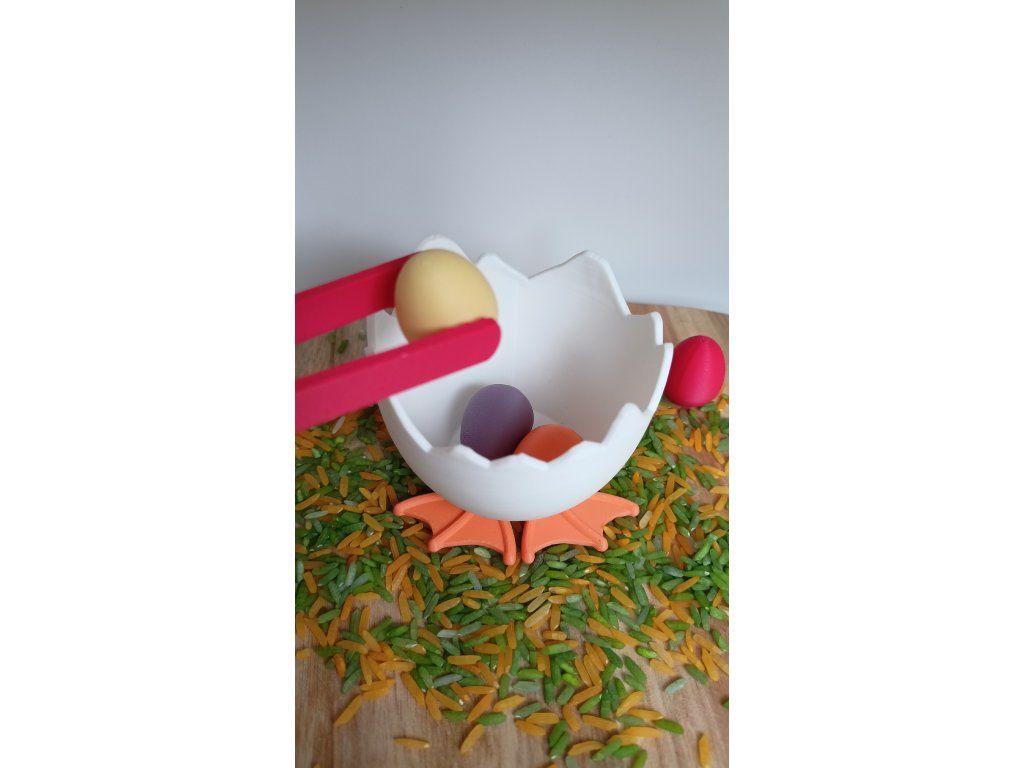 Skořápka – káčátko je hravá miska pro sensory play a potion play ve tvaru prasklého vajíčka s roztomilými nožičkami. Ideální pro sypké materiály, vkládání miniatur, lektvary i jarní tvoření.