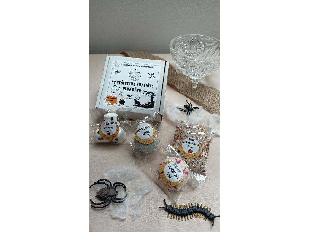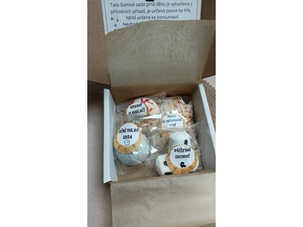 Tato krabička plná děsu je limitovanou edicí. Dopřejte svým dětem radost z šumění. Naleznete v ní duchy, děsivé oči nebo šumivý prach s květy. Stačí přidat vodu a zábava může začít. Neváhejte, pořiďte si ji domů a vyzkoušejte ji, za dětskou radost a chvilku klidu to opravdu stojí.