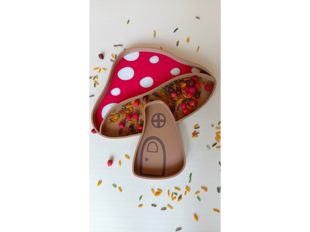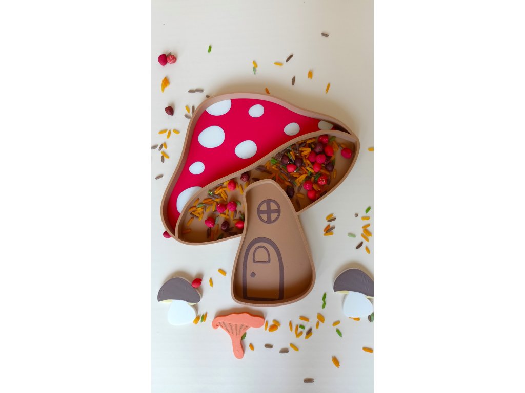 Tento originální tácek ve tvaru muchomůrky dokáže proměnit každou hru v malý kouzelný svět.